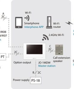 – Bộ chuông cửa JOS-1VW bao gồm Màn hình JO-1MDW và camera chuông cửa JO-DV.