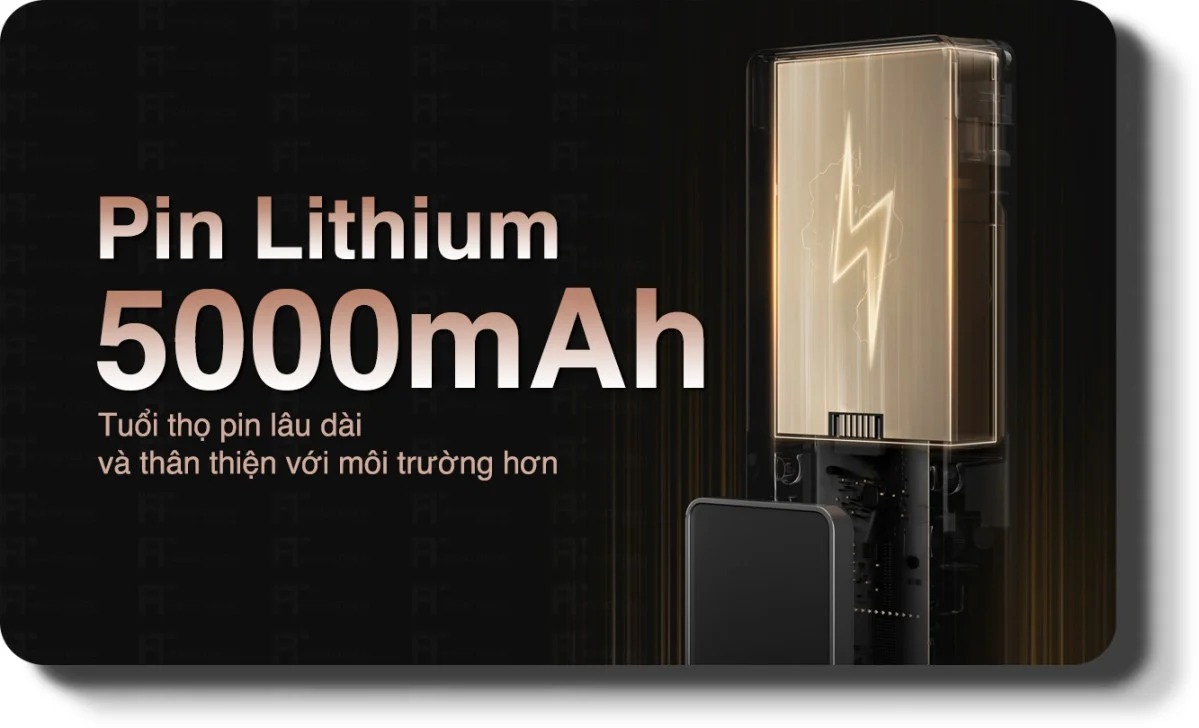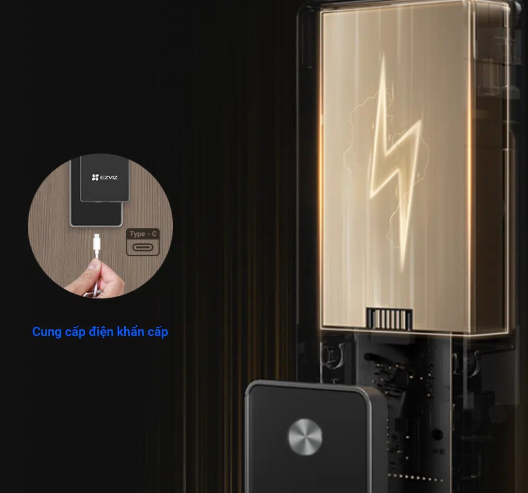 Khi pin yếu, thiết bị sẽ cảnh báo sớm trên app và cho phép sạc khẩn cấp qua cổng Type-C để tránh tình trạng “hết pin ngoài cửa”.