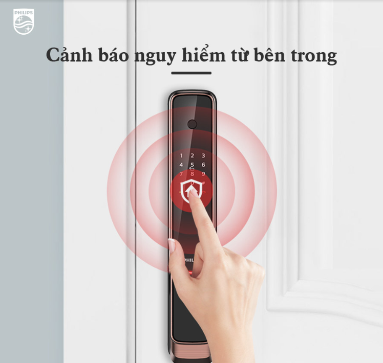 Sau khi đóng cửa, kích hoạt chế độ “cảnh báo mối nguy hiểm từ bên trong” trên màn hình. Chức năng sẽ cho phép phát ra âm thanh báo động khi có kẻ gian cố ý mở khóa từ bên trong, cải thiện hiệu suất chống trộm.