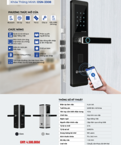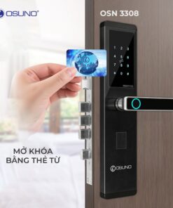 Khoá thông minh OSN-3308 điều khiển qua app điện thoại là dòng khoá 5 in 1, có thể sử dụng điện thoại để điều khiển từ xa mở khóa. Dòng này rất phù hợp với nhà ở, văn phòng hoặc biệt thự cao cấp. Ngoài ra, OSN-3308 còn có các tính năng khác như mở khóa bằng vân tay, thẻ từ, mã số, chìa khóa cơ. Khóa dễ dàng lắp đặt và thay thế cho các loại cửa mới hoặc cửa đã có khóa cơ, khóa điện tử cũ khác.