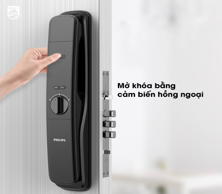 Ngoài ra, trên Philips DDL702 còn trang bị khả năng mở khóa nhờ cảm biến hồng ngoại ở mặt sau. Với tính năng này, người dùng chỉ cần chạm để mở khóa, rất nhanh chóng và dễ dàng.
