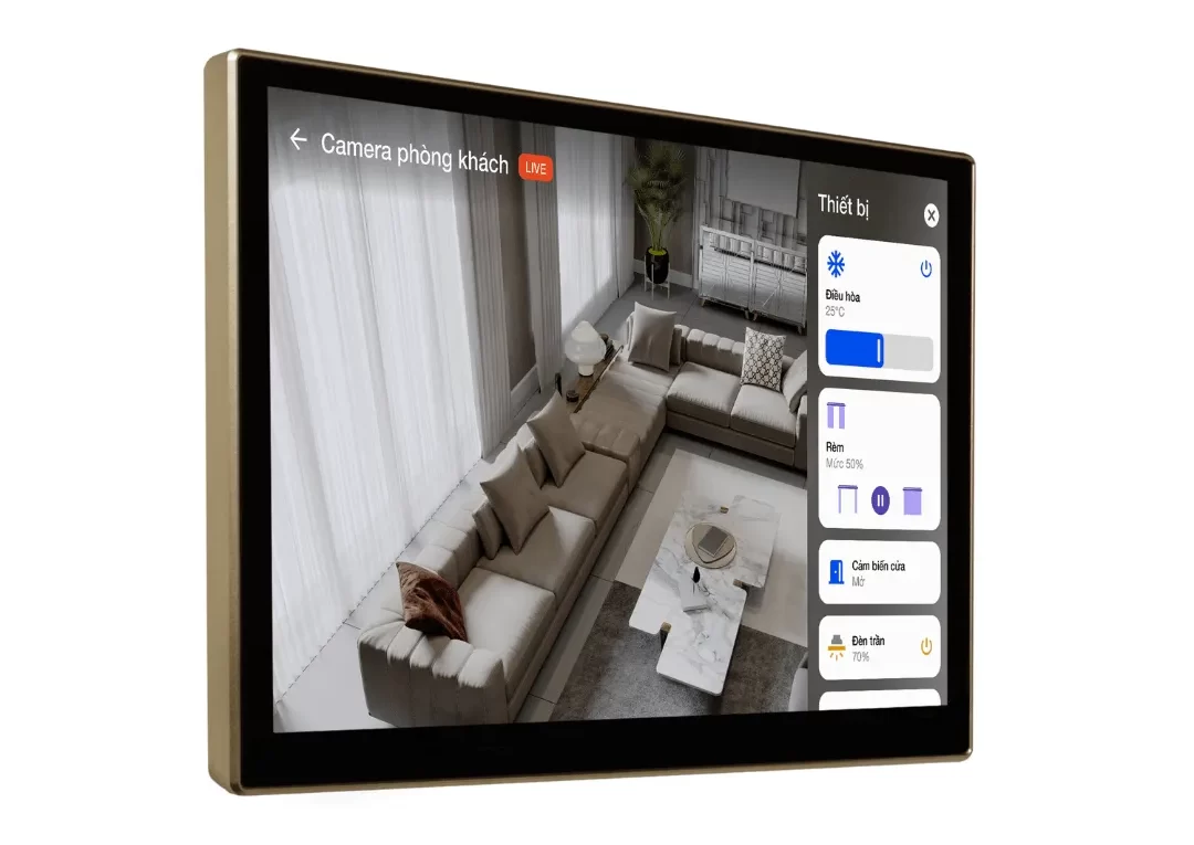 Một trong những tính năng nổi bật của Wallpad là khả năng giám sát camera trực tiếp và điều khiển thiết bị cùng lúc: