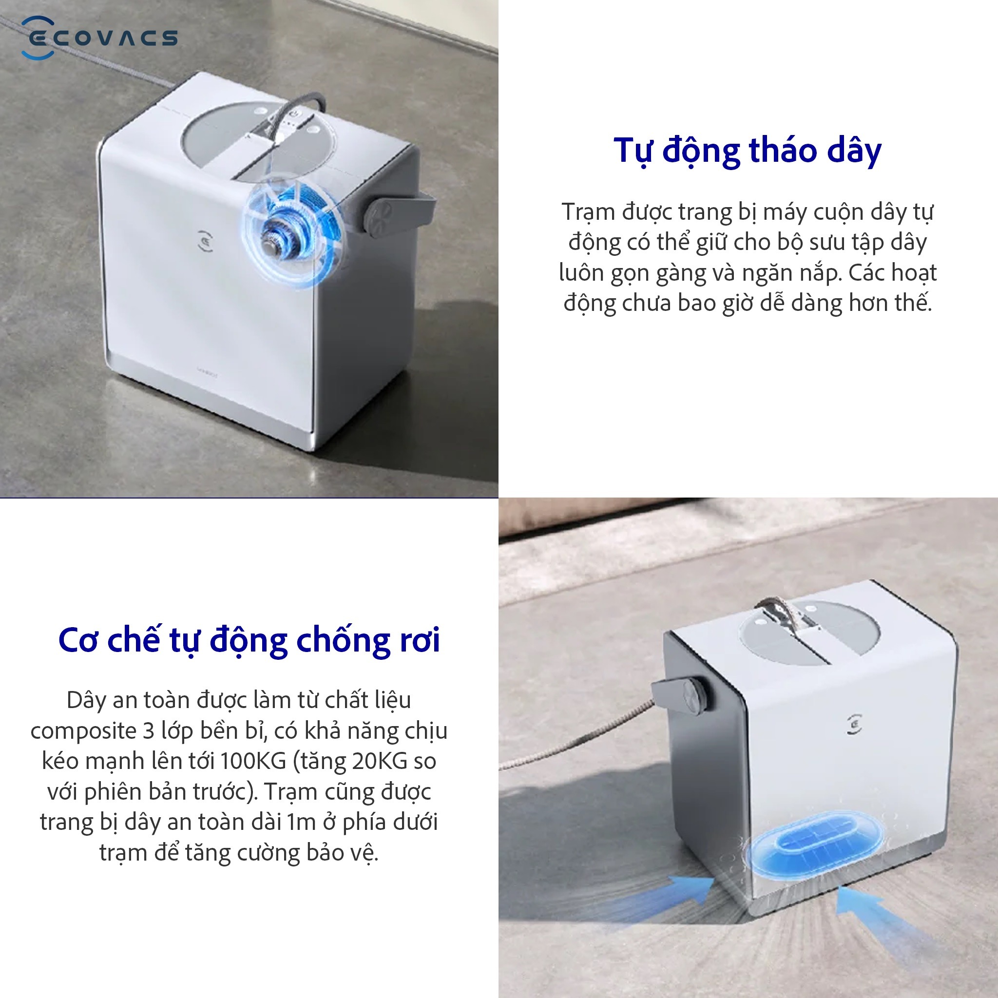 Không chỉ là một robot lau kính thông thường, Ecovacs W2 Pro Omni đi kèm trạm Omni đa chức năng giúp tự động hóa quy trình vệ sinh: